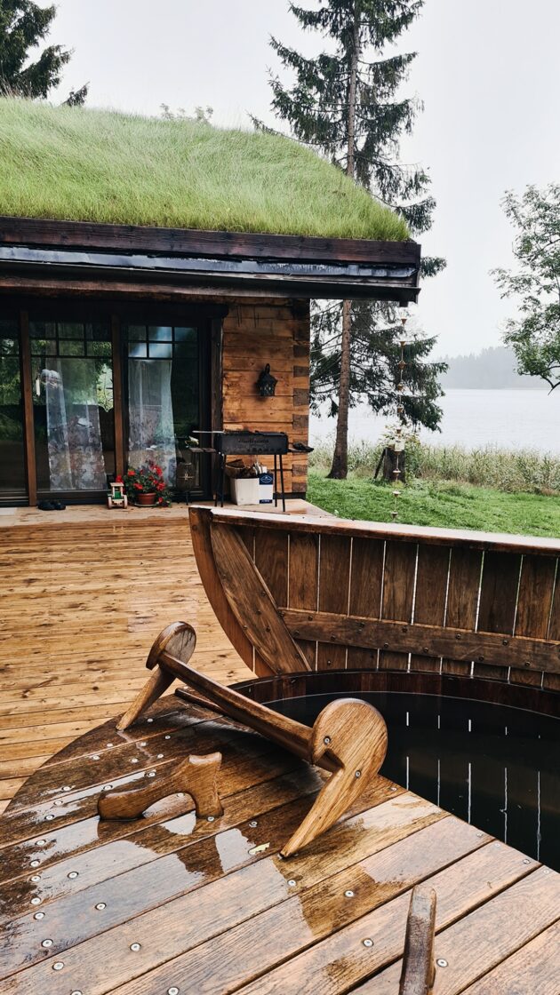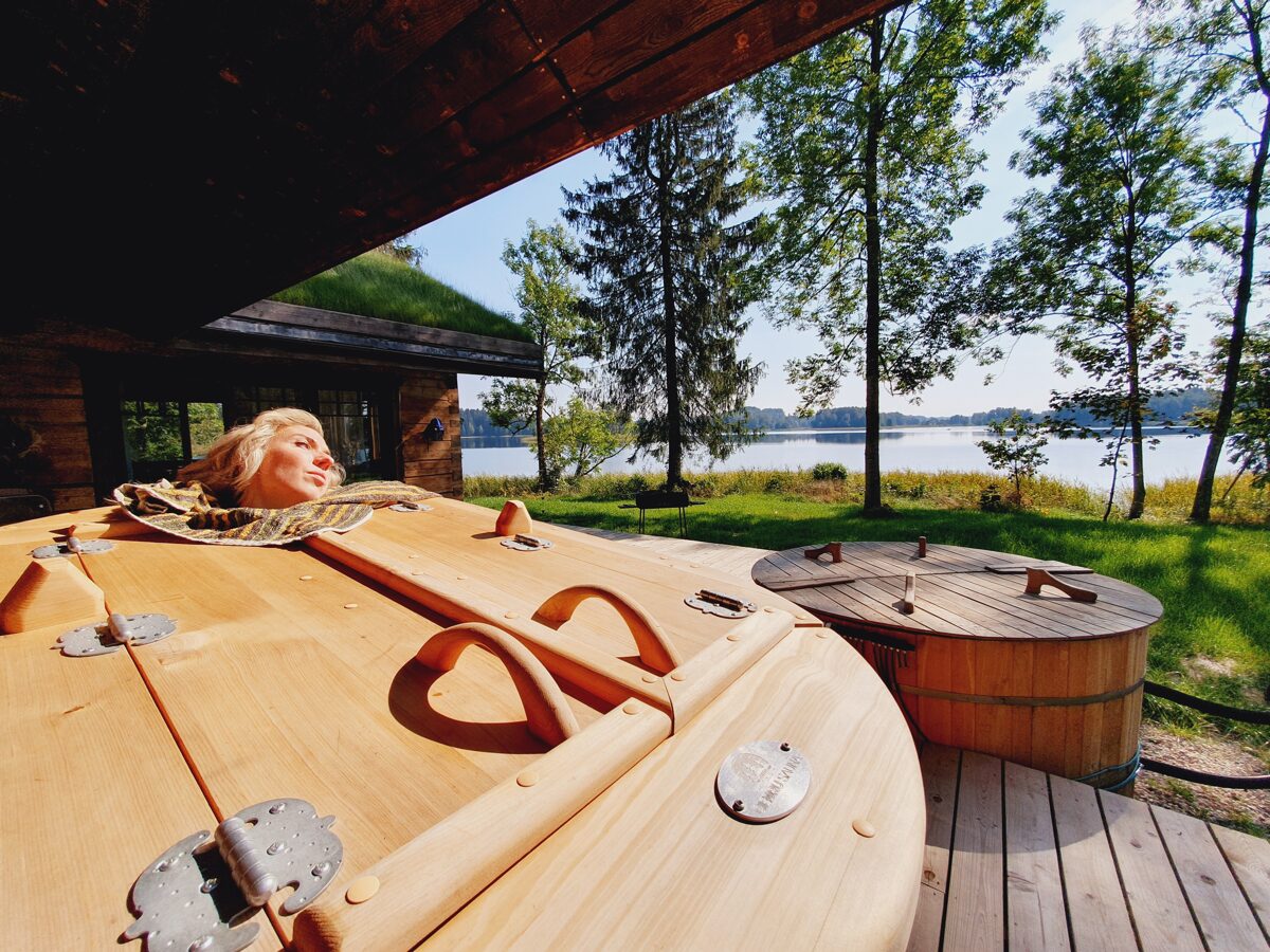 Kāla ezera krastā, zem kārkliem un ozoliem, atrodas mājīga namiņa ar kārpīšu jumtu. Īpašumā pieejama pirts, ūdens kubuls uz terases ar skatu uz ezeru, kā arī laivas, SUP dēļi un ūdens velosipēdi ekskursijām pa ezeru.
