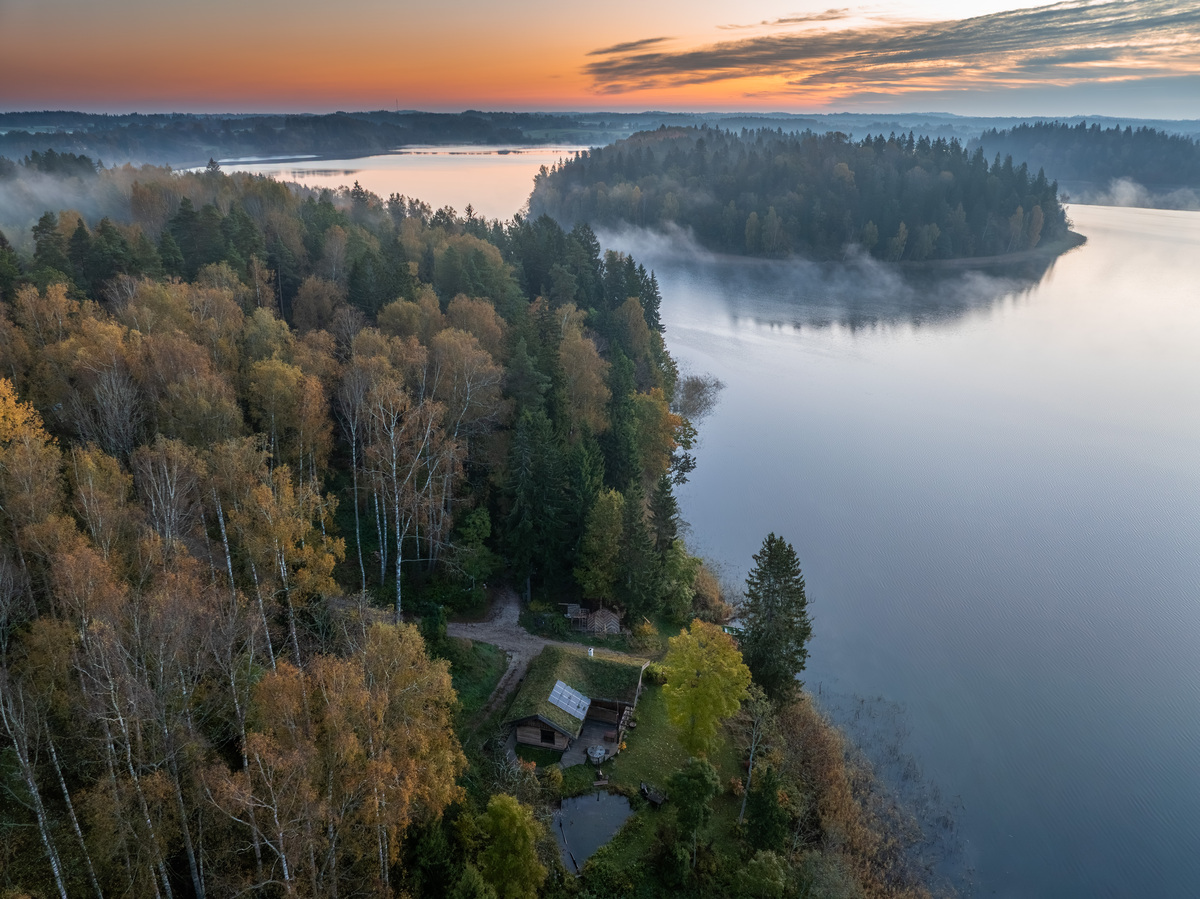 The property spans 6 hectares of private forest, surrounded by larger forests. The nearest neighbors are 1.5 km away. The forest is located in a Natura 2000 protected area with opportunities for hiking around the lake along forest and scenic country trails.